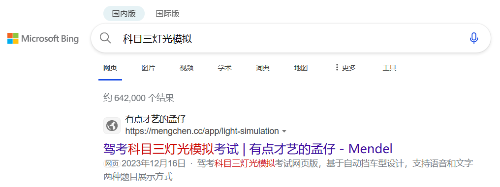 搜索“科目三灯光模拟”,我的页面依然排第一: