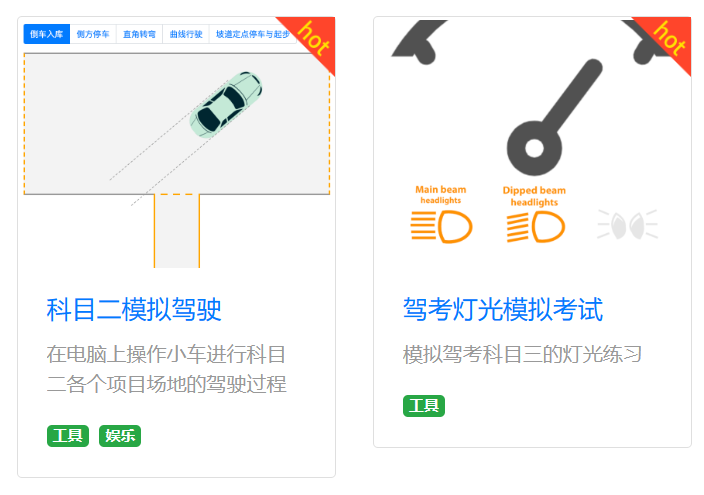 我的网站于2021年4月部署上线,并同步上线了科目二和科目三的网页版模拟程序,如下图所示。