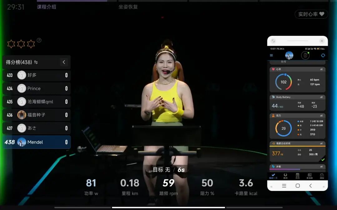 4)运动方式更灵活。单车可以坐着骑(坐姿加速、坐姿爬坡),也可以站着骑(站姿爬坡、站姿冲刺),同时可以自主控制踏频和阻力,来达到控制心率,最终实现想要的训练效果。