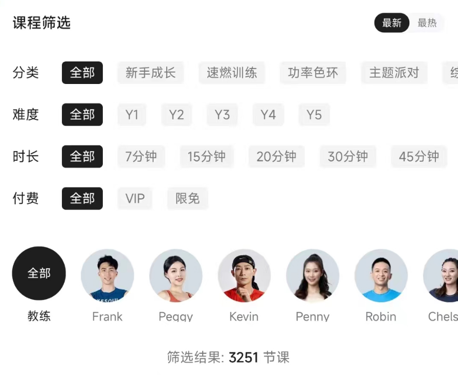 App中有很多单车课程,可以根据需要选择喜欢的课程。也可以跟着直播课来训练。