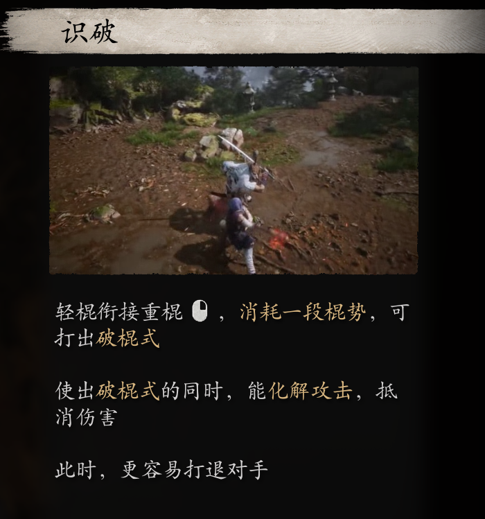 识破成功后可以衔接轻棍或重棍,分别对应以下两种技能: